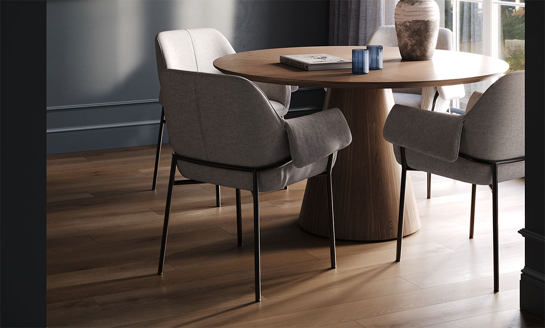 В интерьерах с кварцпаркетом натуральное дерево задаёт характер пространства: делает его мягче и теплее, светлее или глубже. Так пол становится отправной точкой для всей палитры.